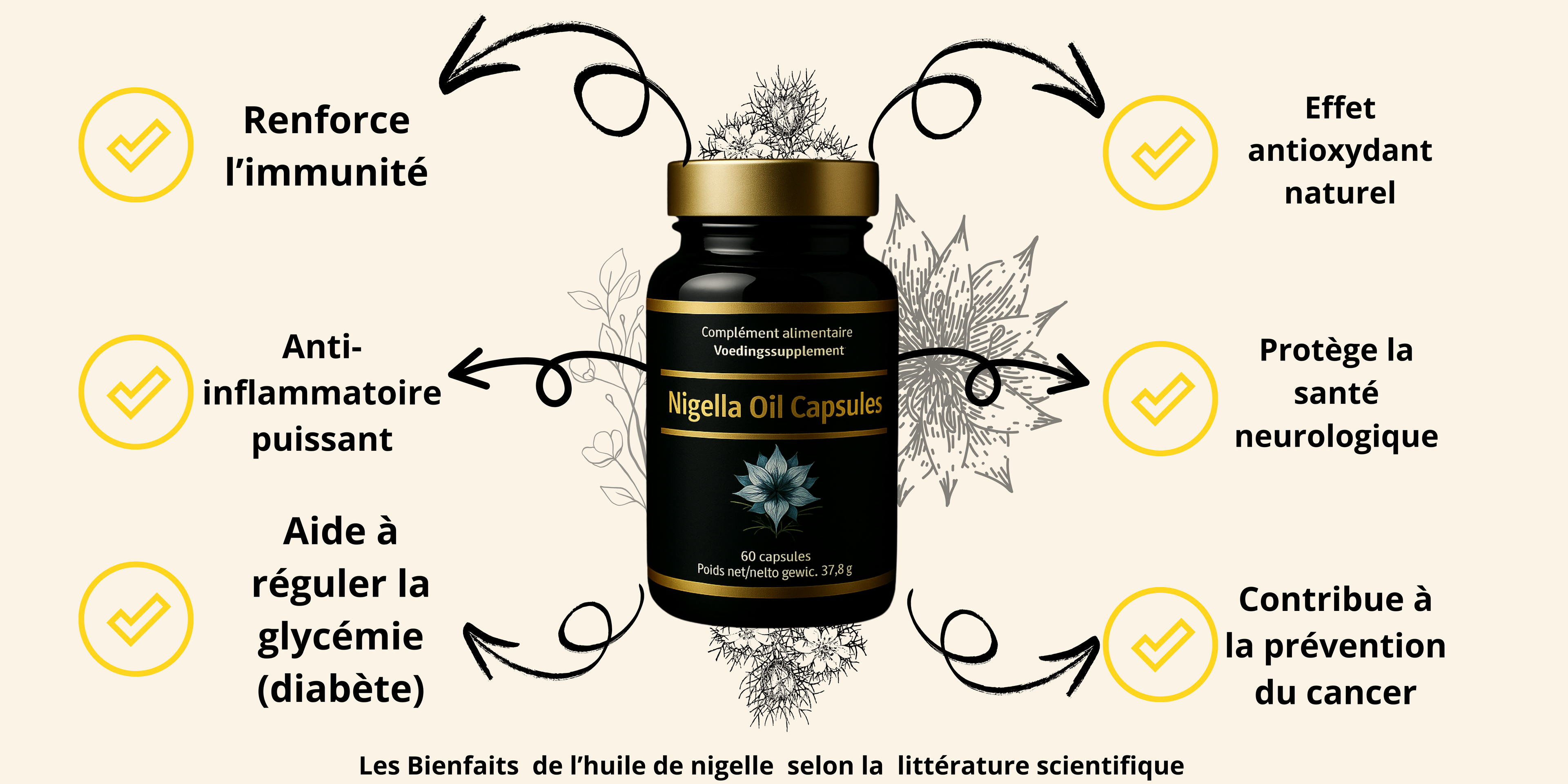 Les capsules de nigelle sont reconnues pour leurs nombreux bienfaits sur la santé. Elles possèdent des propriétés antioxydantes, anti-inflammatoires, antivirales et antibactériennes.